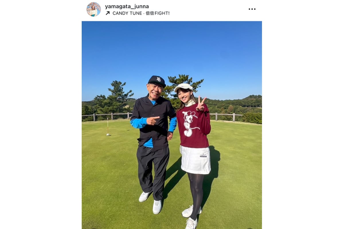 「ノリさんうらやましいわー!!笑」とコメント殺到 TBSアナの“ゴルフウエア”姿&木梨憲武との“激レア”2ショットが話題に