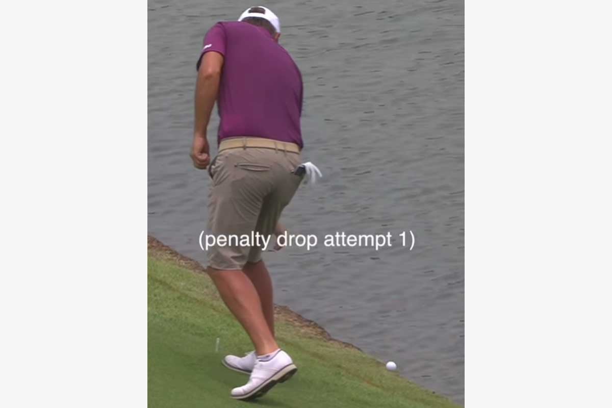 止まるわけないドロップで「プロV1x」2球を“みすみす池ぽちゃ”動画が220万バズ ルール厳守するには仕方ないの?