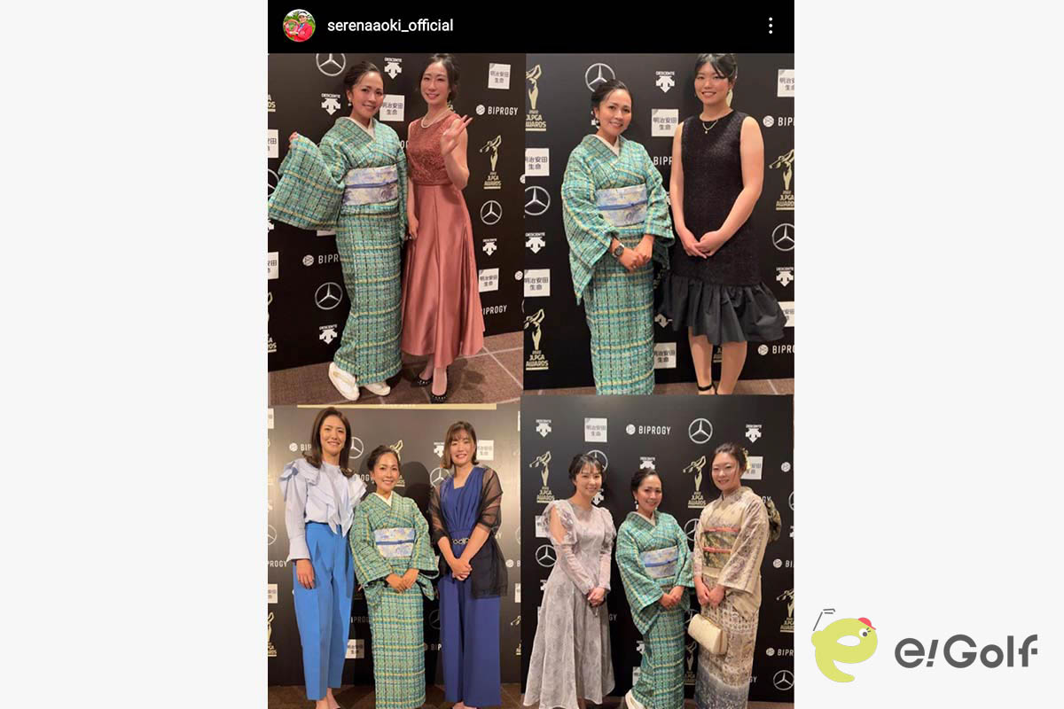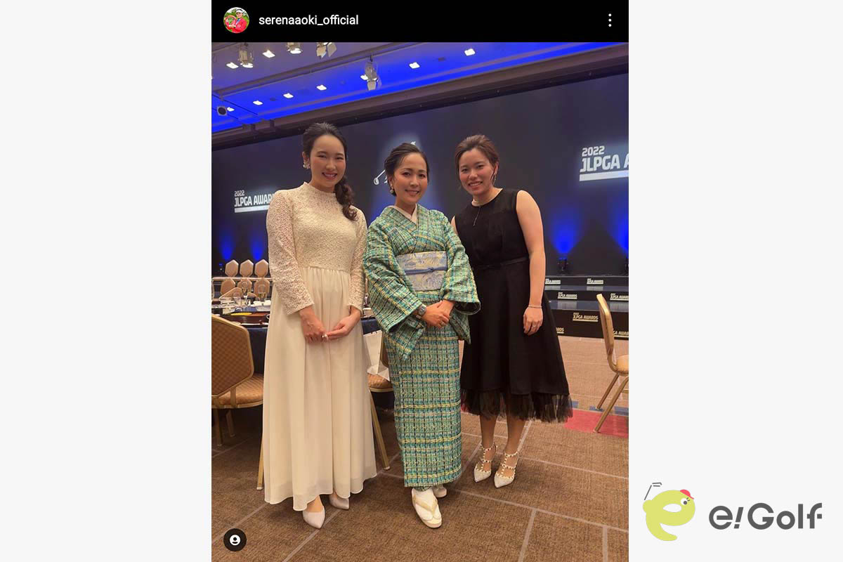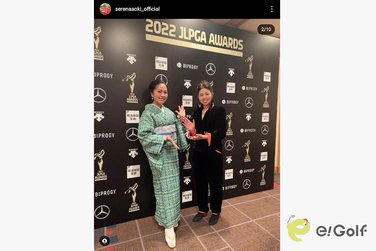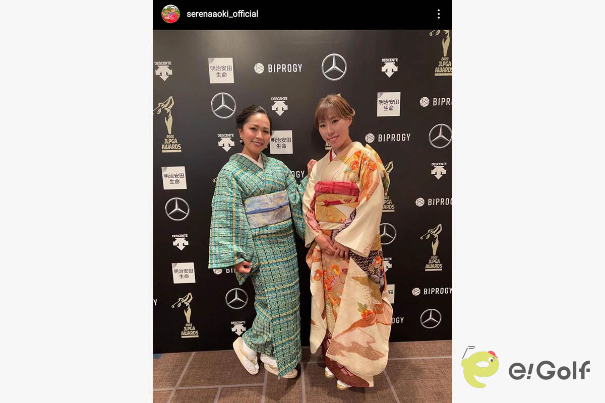 プロゴルファーの青木瀬令奈が自身のインスタグラムを更新。「JLPGAアワード2022」に参加したときの貴重な着物姿を披露しました。