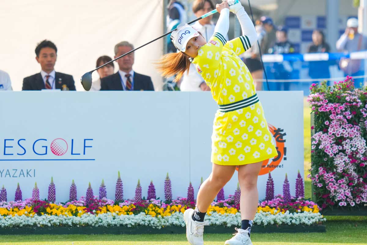 足元まで完璧! “菜の花イエロー”華やか佐久間朱莉 春コースで映えた「JACK BUNNY!!」【女子プロファッション】