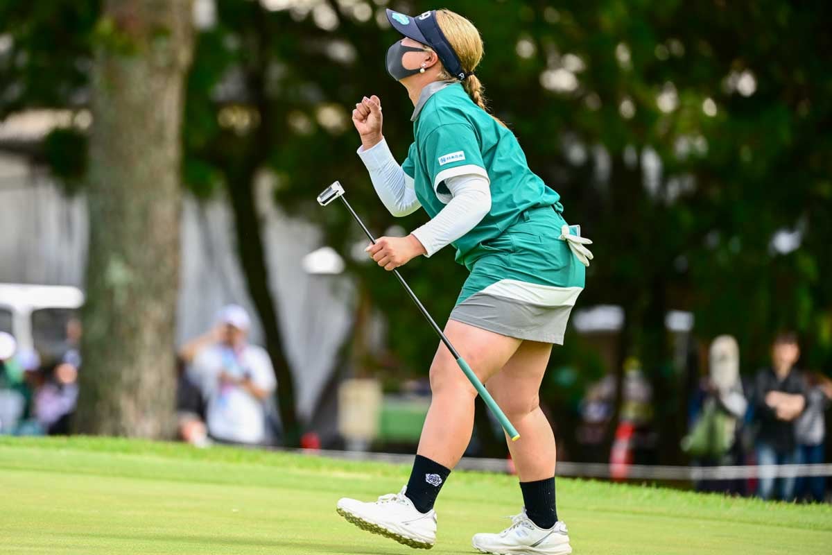 渋野日向子との2サムでスタートした最終日は2番でバーディーを先行させたものの、5番のティーショットを大きく左に曲げてバンカーの縁に。ツマ先下がりかつ深いラフの難しいライからのショットを強いられた第2打が“トゥシャンク”し、ボールは後方のバンカーへ。この一打が響き、痛恨のダブルボギーを喫する。