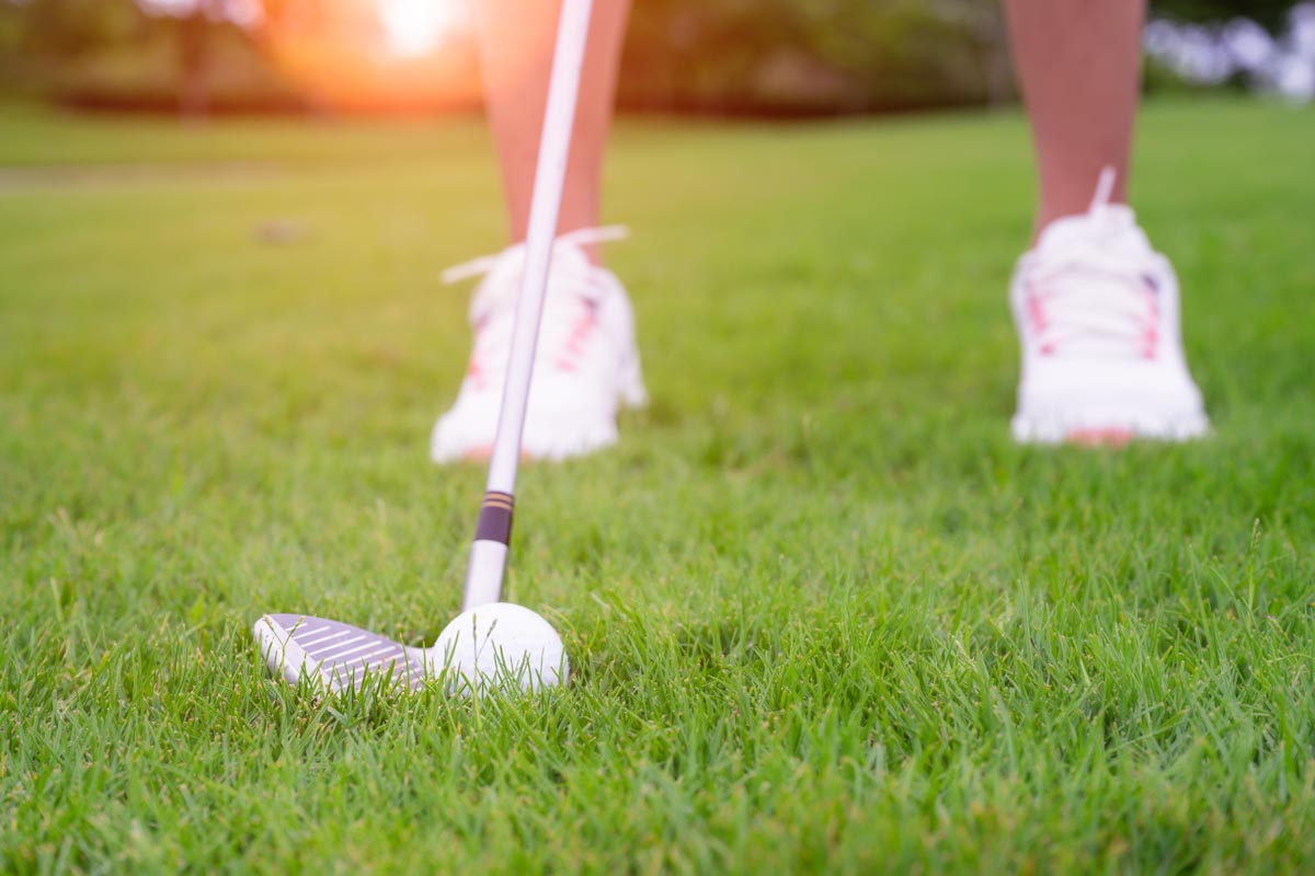 ツマ先下がりでは「腰はどっしり、お尻をツン」アドレスならバランス良く振れる
